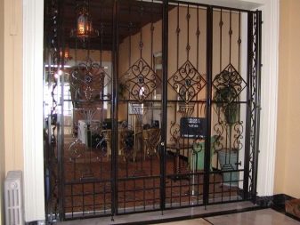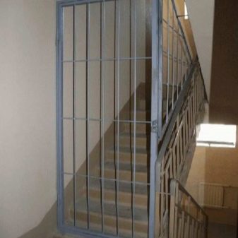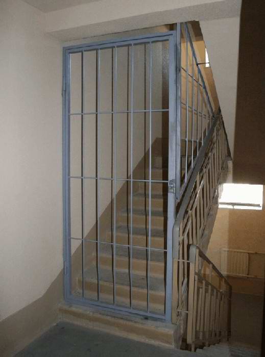 - Wohngebäude. In modernen Wohngebäuden finden sich häufig Gittertüren und Gitter an den Treppenhäusern. Hier erfüllen sie nicht nur eine schützende, sondern auch eine ästhetische Funktion. Die effektivsten Gitterprodukte mit Schmiedeelementen. Beide Versionen kommen hier zum Einsatz: klappbar und schiebbar oder klappbar.