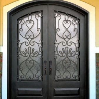 Dies sind Stahlmodelle von Eingangstüren mit doppelt verglasten Fenstern und Gittern, die in der letzten Zeit sehr verbreitet geworden sind. Sie sehen sehr ungewöhnlich und stilvoll aus.