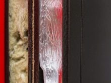 Mit einer ähnlichen Struktur hält das Metall eine optimale Temperatur im Raum aufrecht, während es im Inneren des Hauses beheizt bleibt, während das Blech außen kalt bleibt. Diese Methode der Wärmekonservierung ersetzte die Verwendung von zwei Eingangstüren, zwischen denen sich ein Luftspalt befand. Diese Option ist nicht nur wirtschaftlich unrentabel, sondern erfordert auch zusätzlichen Platz für die Installation von zwei Strukturen.