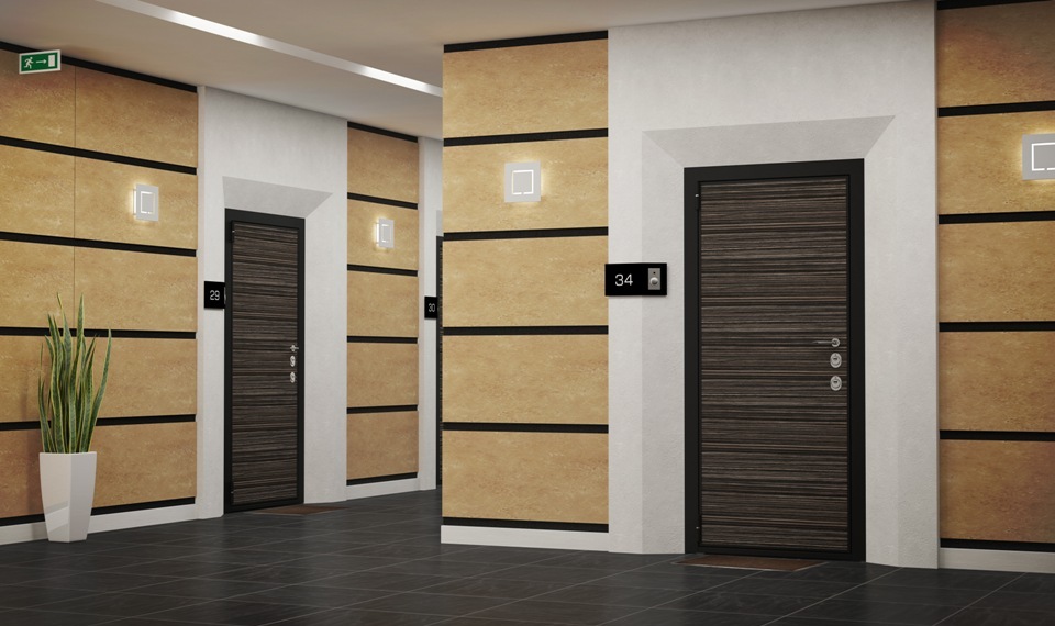 - Für Wohnungen. Solche Modelle der Marke sind nicht nur stilvoll, sondern auch zuverlässig. Sie müssen über ein spezielles Schließsystem verfügen, das es Angreifern nicht erlaubt, private Wohnungen zu betreten. Darüber hinaus haben solche Türen eine volle Sicht in das Auge. Sie werden von 40 bis 100 Tausend Rubel kosten. Der Preis hängt von der Konfiguration und dem ausgewählten Material ab. Im Sortiment der Wohnungsmodelle gibt es Optionen von Metall, Holz und deren Kombinationen. Die Klarheit und Korrektheit der Linien macht solche Türen schön und modern, sie passen perfekt in die Wohnungen von neuen Gebäuden.