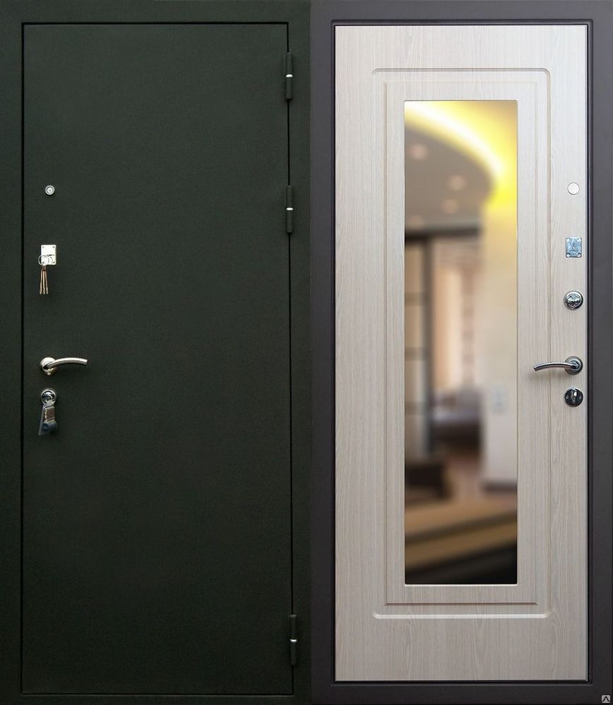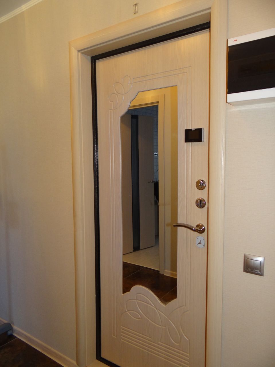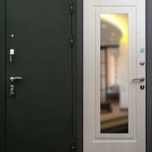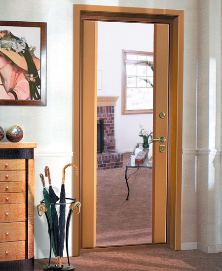 - Tür mit Innenspiegel verliert nicht so wichtige Eigenschaften wie Haltbarkeit und Einbruchhemmung. Die Funktionalität der Tür wird nur durch einen Spiegel ergänzt.