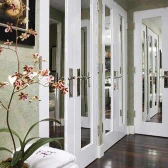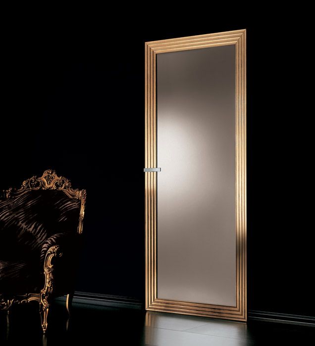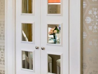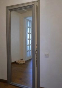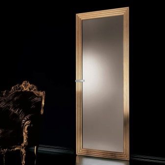 Spiegel großer Größe und klassischer Form sind in jedem Interieur angebracht. Wählen Sie für ein moderneres Design eine Tür mit einem komplizierteren Spiegel. Achten Sie auch auf die Exemplare mit Spiegelplatten-Einsätze.