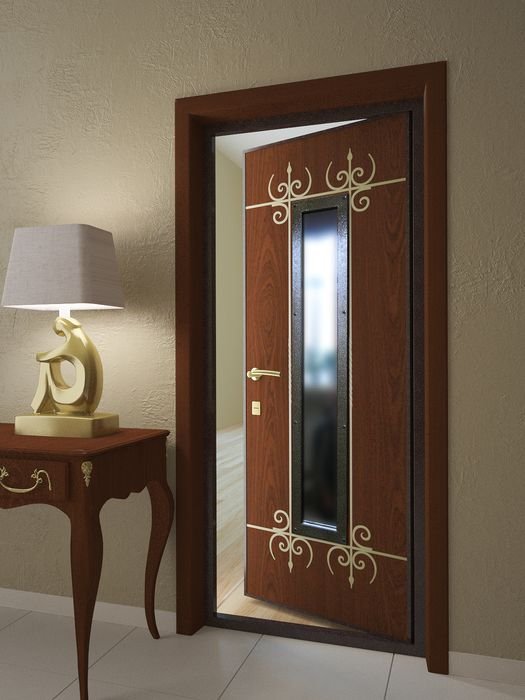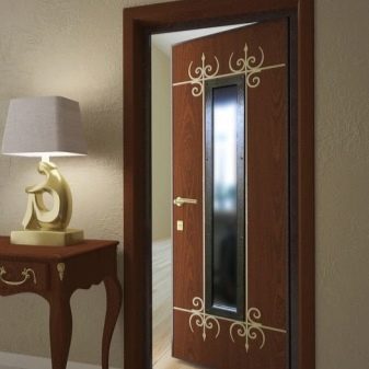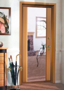 Holzarbeiten mit einem Spiegeldekor sind sehr beliebt. Dieses Material zieht Verbraucher mit seiner Umweltfreundlichkeit an. Die Tür dieses Materials sieht ungewöhnlich, elegant aus. Es sollte angemerkt werden, dass die Produkte aus dem Array einen ziemlich hohen Preis haben, der von dem verwendeten Furnier abhängt.