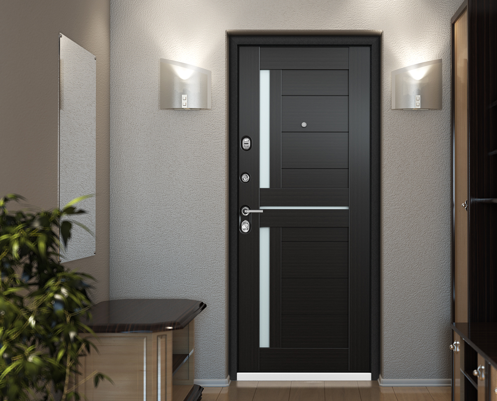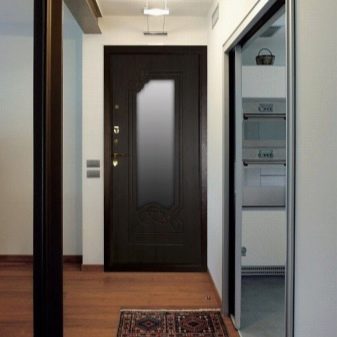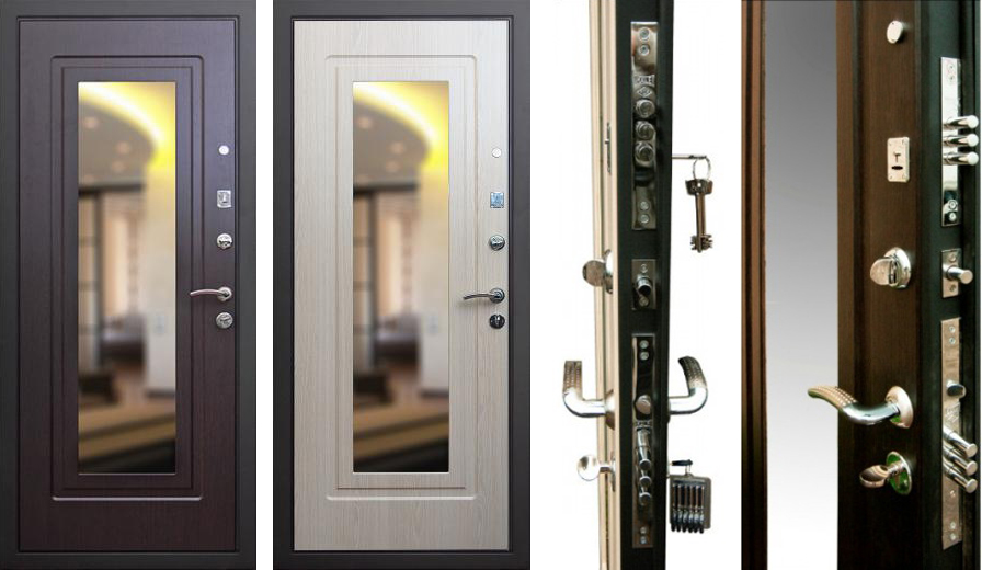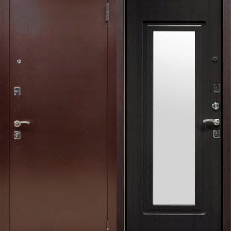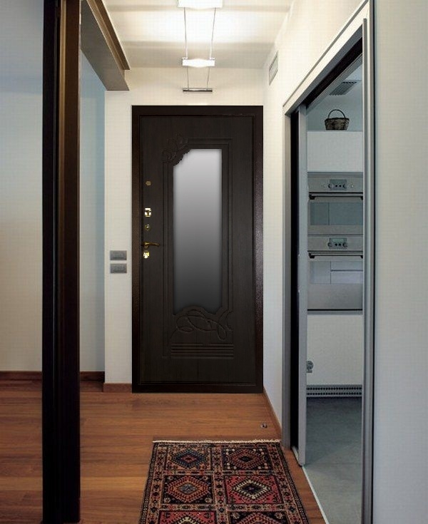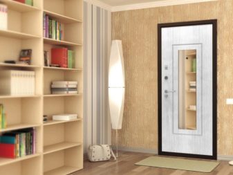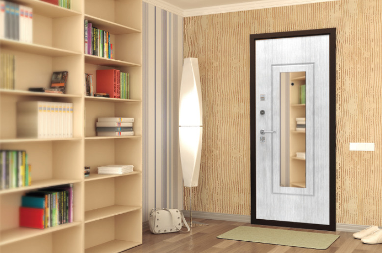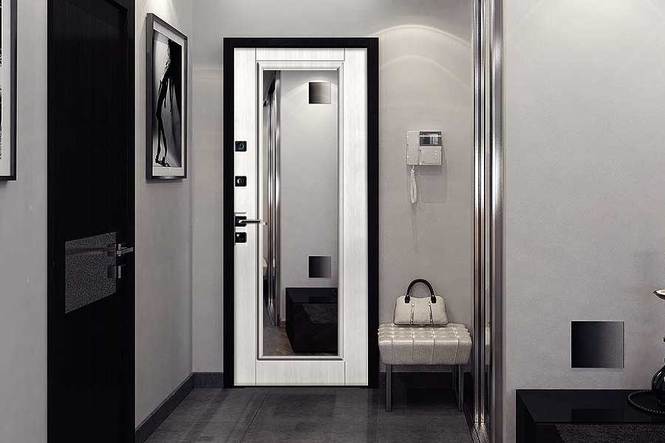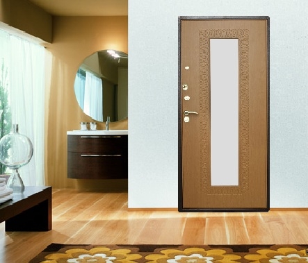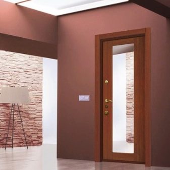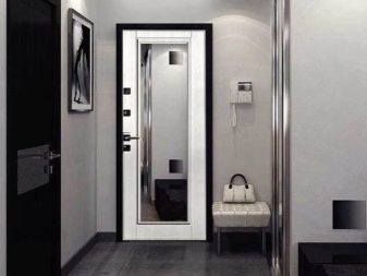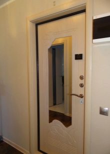 Käufer sprechen mit einer Stimme über den besonderen Komfort der Verwendung einer Fronttür mit einem Spiegelglanz. Erstens müssen keine Möbel mit einem Spiegel installiert werden. Zweitens spielt jeder Flur mit neuen Tönen und beleuchtet mit Licht.