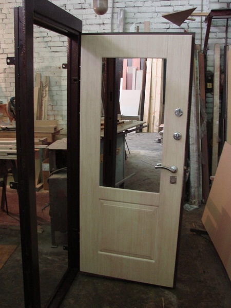 - Unternehmen Der Wächter bietet seinen Kunden dekorative Spiegelplatten an. Sie können absolut jedes Modell der Tür wählen und eine reflektierende Oberfläche hinzufügen.