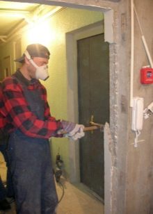 - Nachdem Sie die alte Tür abgebaut haben, können Sie mit der Vorbereitung der Öffnung fortfahren. Entfernen Sie vorsichtig alle Kittreste, Ziegel und anderen Abfall. Es ist notwendig, den Abfall loszuwerden, der fallen kann. Wenn es erhebliche Lücken gibt, müssen Sie sie mit Ziegeln und Zementmörtel füllen. Die Lücke ist auch mit einer speziellen Lösung verschmiert.