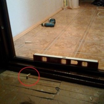 - Mit Hilfe von Konstruktionsbolzen oder -ankern befestigen wir den Rahmen zusammen mit der Tür. Dann müssen Sie überprüfen, wie die Tür in der ausgewählten Position funktioniert. Oft sackt das Rahmenhaus nicht durch und die Befestigungselemente kippen daher nicht um. Ankerbolzen fixieren auch die Schwelle. Muttern müssen so weit wie möglich angezogen werden - bis zum Anschlag.