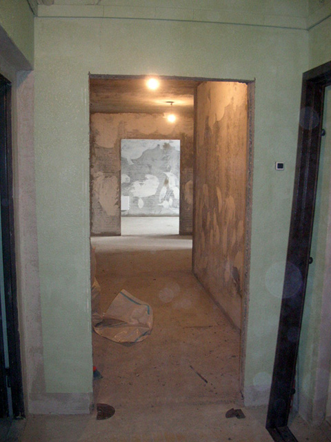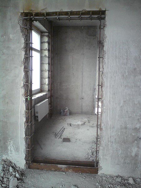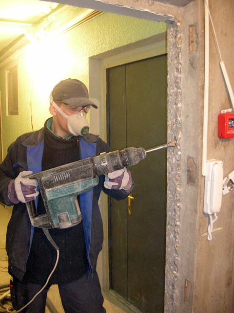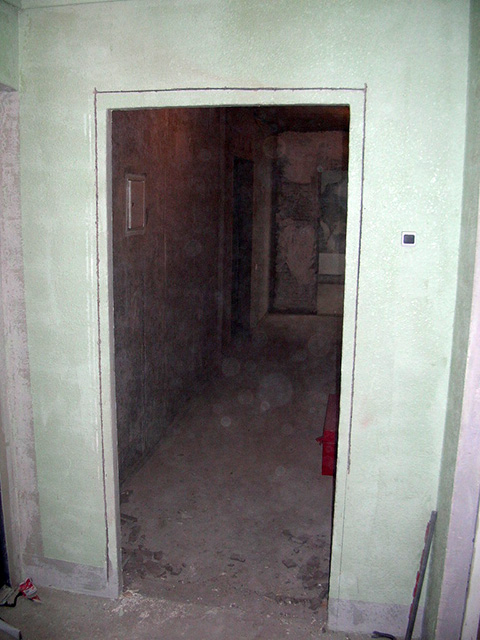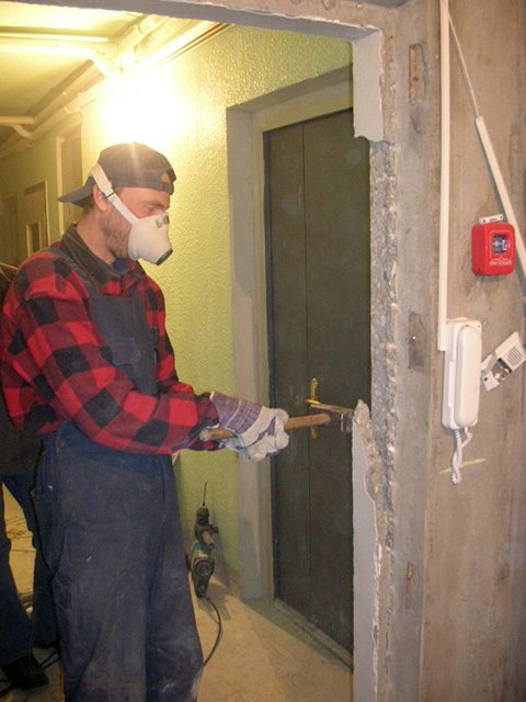 - Auf der ersten Hauptbühne wird die veraltete Konstruktion entfernt, ebenso wie die Vorbereitung der Türöffnung. Es wird gründlich von altem Schmutz und anderen Abfällen gereinigt.