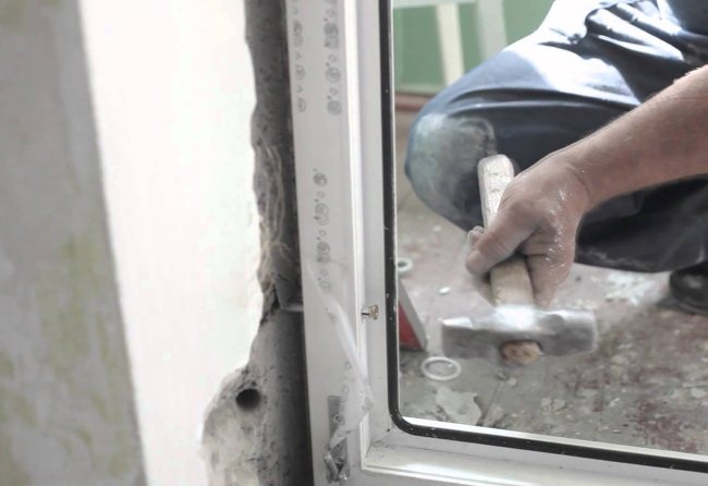 - Es ist notwendig, einen Türrahmen aus Kunststoff in die Öffnung einzufügen. Mit Hilfe von Keilen wird die gesamte Struktur fixiert. Keile sind um den Umfang der Öffnung herum verteilt. Sie müssen angepasst werden, um die optimale Position der Tür zu finden.