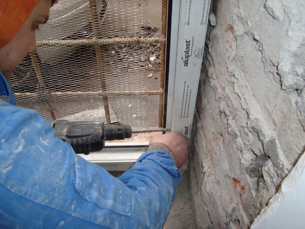 - Die Schrägen sind mit Schrauben an der Wand befestigt. Der Innenraum muss gefüllt sein. Meistens werden für diese Zwecke Isolierungen und Dichtungen verwendet. Von außen mit Kunststoff verstärken.