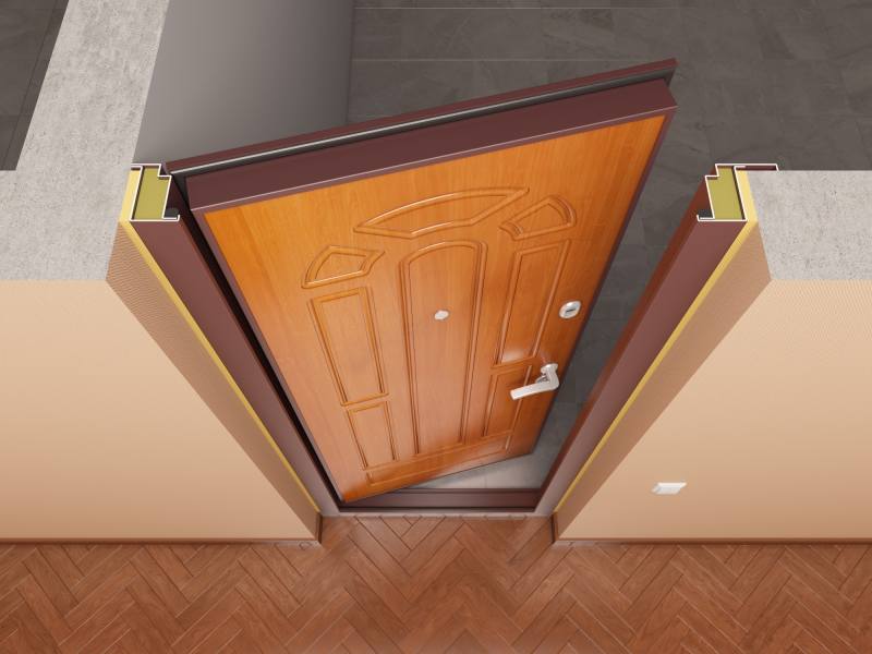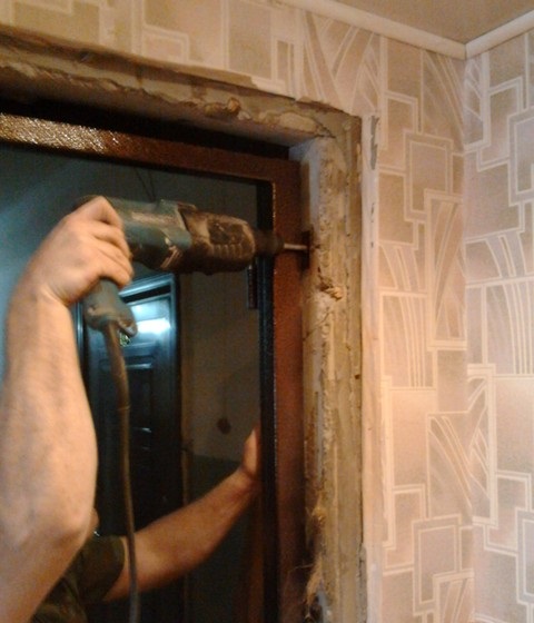 - Nach all diesen Aktionen sollte die Türöffnung glatt sein. Dies ist erforderlich für eine schnelle und einfache Installation der Vordertür.