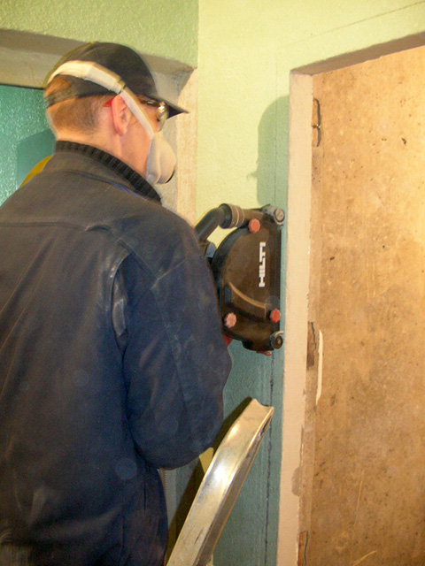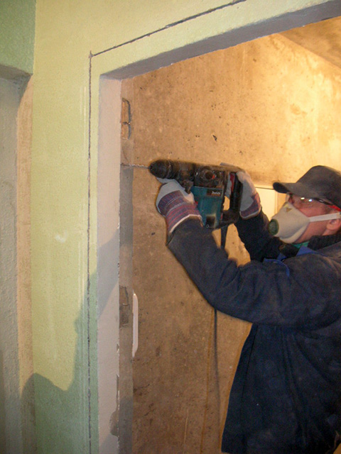 - Dann die Hänge auseinanderbauen, die Tapete abziehen, den Gips schlagen. Finde alle wichtigen Befestigungspunkte. Alle Anker schneiden vorsichtig die Mühle. Versuchen Sie, die Box nicht zu beschädigen.