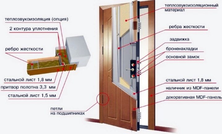 Metallkasten - Türkörper. Für maximalen Schutz werden Kästen mit 1,5 mm dicken Blechen mit einem gebogenen Schweißprofil mit Plat- tenbändern empfohlen. Die Dicke der Veranda - 4 mm.