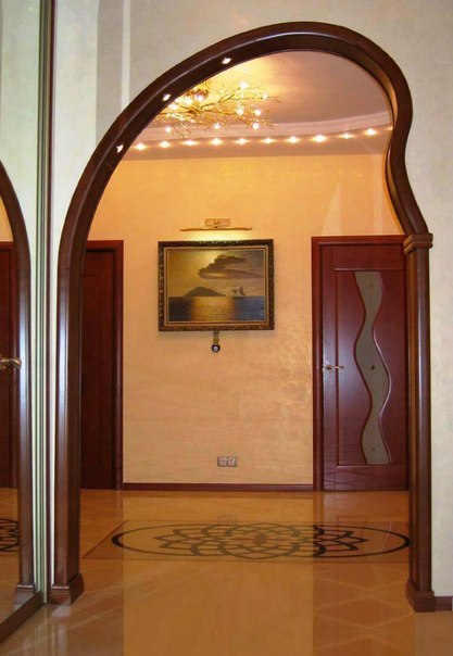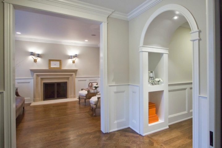 Das Ausstatten von Bogenöffnungen ist eine schwierige Aufgabe für einen unvorbereiteten Bauunternehmer. Figured gewölbte Kante es ist schwierig, es perfekt flach zu machen, besonders in Beton oder Ziegelwänden. Dennoch sind die Bögen heute eine klassische Option für die Gestaltung von Gängen, die Anwesenheit einer Tür, in der nicht angebracht ist. Bögen sollten nur in hohen Räumen verwendet werden, da der sich verjüngende obere Teil die Höhe der Decken signifikant "isst".