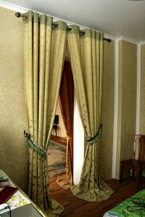 In manchen Fällen ist es angebracht, einen Eingang mit Hilfe von Vorhängen mit Lambrequins zu gestalten. Meistens wird das im selben Raum gemacht. In diesen Fällen, wenn die Türöffnung zu eng für eine vollwertige Tür ist und Sie nicht auf eine Trennwand verzichten können, kommen auch die Vorhänge zur Rettung. Lambrequins Bando geeignet, nur in hohen Öffnungen zu installieren, um den Raum so angenehm wie möglich zu verlassen.
