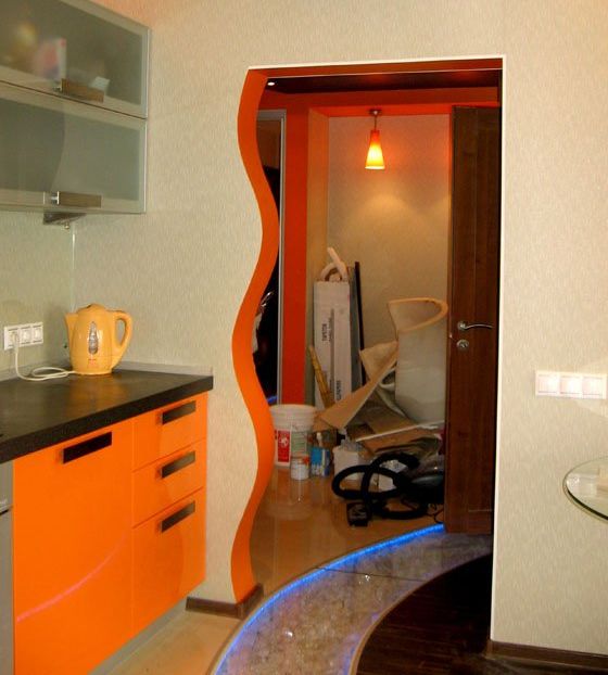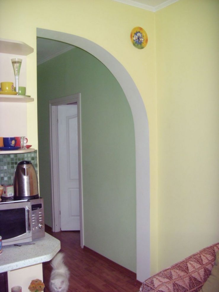 Wie die leichte Alternative erfunden wurde falscher Bogen. Gewöhnliches rechteckiges Portal wird mit einem bebilderten Einsatz von Trockenbau geliefert. Die Herstellung einer solchen Konstruktion ist sogar für einen Anfänger möglich, und falls der Bogen müde wird, kann die Trockenmauer leicht demontiert werden und das Portal oder die klassische Tür kann anstelle der Öffnung installiert werden. Falsche Bögen sollten nicht vollständig oval gemacht werden, es ist besser, eine rechteckige Version in abgerundeten Ecken zu wählen.Eine Standardöffnungshöhe von 190-200 cm mag einfach nicht ausreichen.