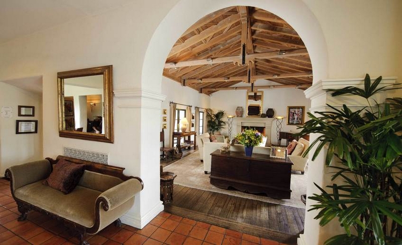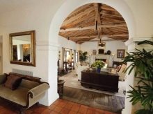 Die hohe Türöffnung wird oft in Form eines Bogens ausgeführt. Sie kann dem Inneren des Hauses Luxus und Anmut hinzufügen.Die tiefe Türöffnung dient nicht dazu, die Bögen zu erkennen, denn dann wird das Design sehr massiv aussehen. Aber in diesem Fall reicht das Modell des Bogens mit großen Säulen.