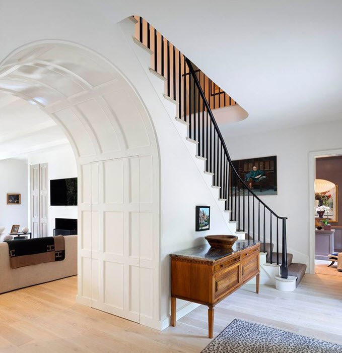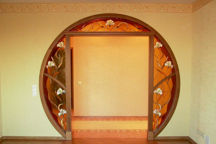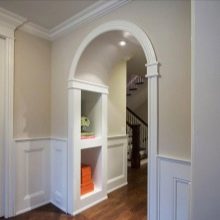 In der Regel wird der Raum durch einen Bogen am Eingang geräumiger gestaltet. In diesem Fall werden solche Strukturen oft am Eingang eines Raumes aus einem engen Korridor installiert. Der Bogen füllt es mit Raum und Komfort. Bögen können die ungewöhnlichsten und kompliziertesten Formen haben.