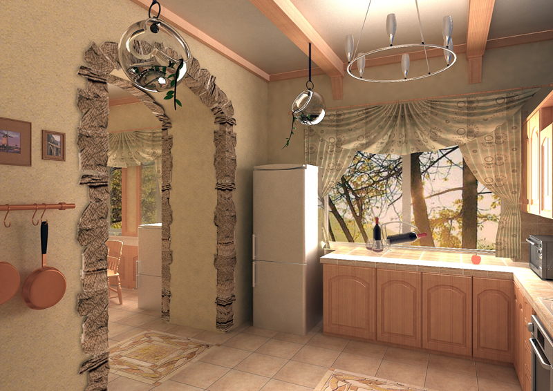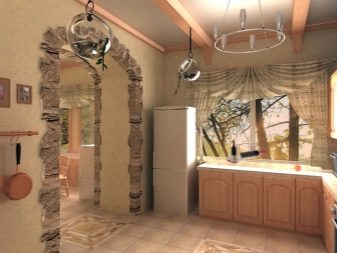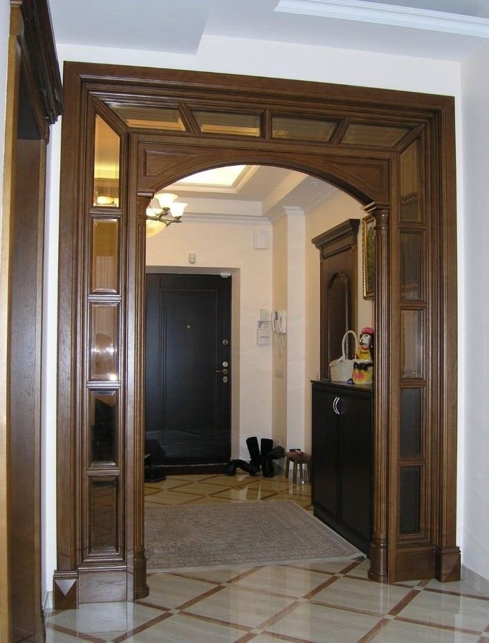 Die Türöffnung ist in der Lage, die Grenzen zwischen den Räumen zu löschen., aber zur gleichen Zeit und trennen Sie sie.Dieser Entwurf kann den Raum optisch breiter und geräumig machen. Die Fertigstellung zeichnet sich auch dadurch aus, dass in diesem Fall die Türöffnung nicht unbedingt in einer klassischen rechteckigen Form gestaltet ist, wie dies bei Türkonstruktionen der Fall ist, sondern anderen Formen den Vorzug geben. Zum Beispiel können Sie eine kuppelförmige, abgerundete, rautenförmige, trapezförmige Passage machen.