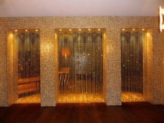 Installieren Sie auch magnetische Vorhänge und schützen Sie sie vor Insekten. Es gibt schöne Gardinen in Form von Regen. Sie können einen transluzenten Tüll aufhängen, der zwischen verschiedenen Räumen einen leichten Schleier bildet.