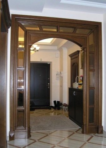 Bei der Auswahl eines Designs müssen Sie einige Regeln berücksichtigen. Das Dekor der breiten und schmalen Tür muss anders sein. Für die breitere wählen in der Regel mehr prominente und große dekorative Elemente, und schmale Öffnungen sind mit einfachen Materialien ausgestattet. Es ist besser, für diese hellen dekorativen Elemente zu verwenden.