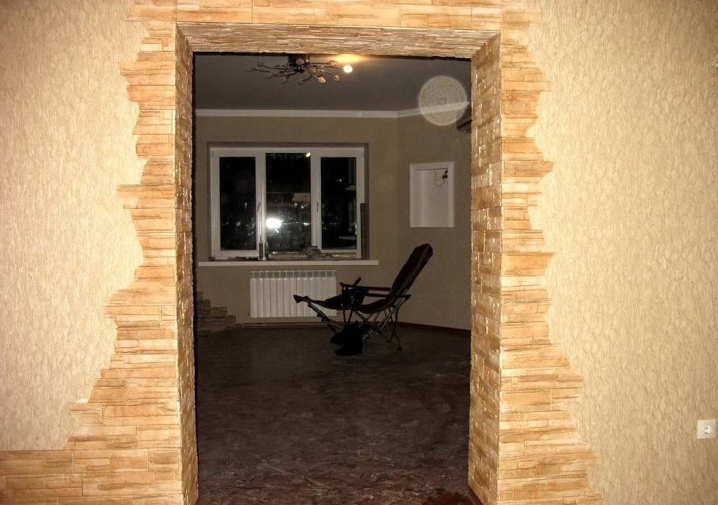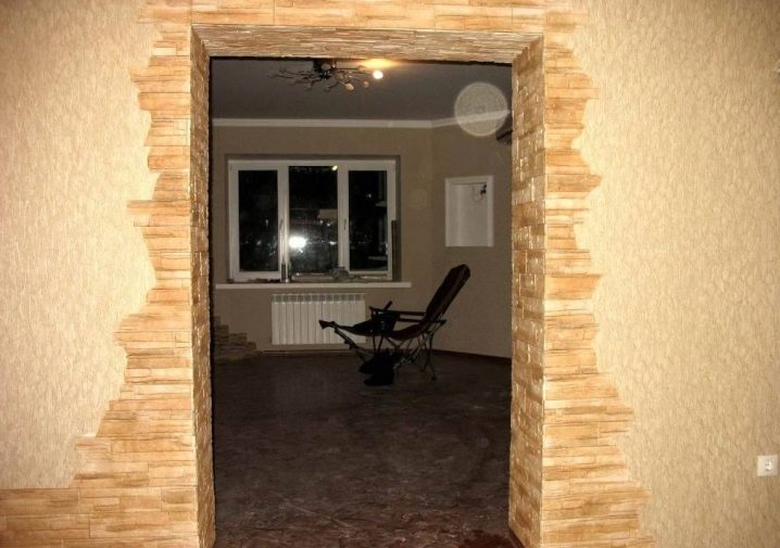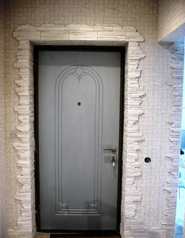 Dekorativer Stein kann jede Türöffnung verzieren.Sehr oft wird es nach der Installation einer Eisentür verwendet. Er ist in der Lage, alle Fehler zu verstecken und das Aussehen der Blende zu verändern. Dekorativer Stein ist ziemlich haltbar und sieht sehr elegant aus.