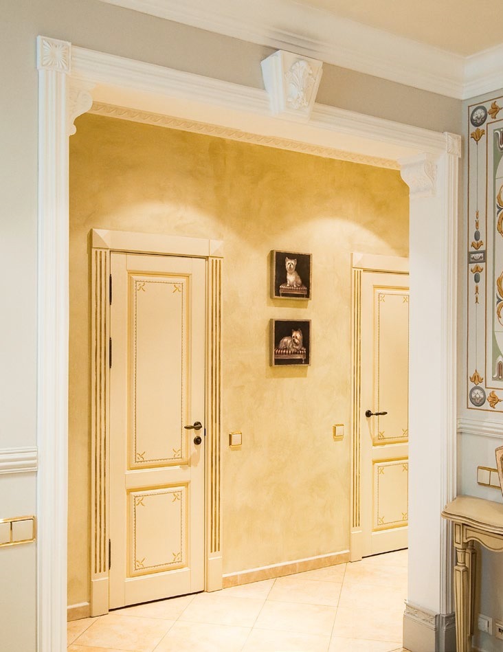 Um die Türöffnung zu beenden, verwendete oft Stuck aus Polyurethan. Bei schmalen Türöffnungen wird häufiger eine glattere und nicht zu geprägte Stuckleiste gewählt. Es wird angenommen, dass zu voluminöse Texturen die Gänge optisch verengen und den Raum weniger geräumig machen können. Massenstuck wird am häufigsten für die Gestaltung von hohen Türöffnungen verwendet.