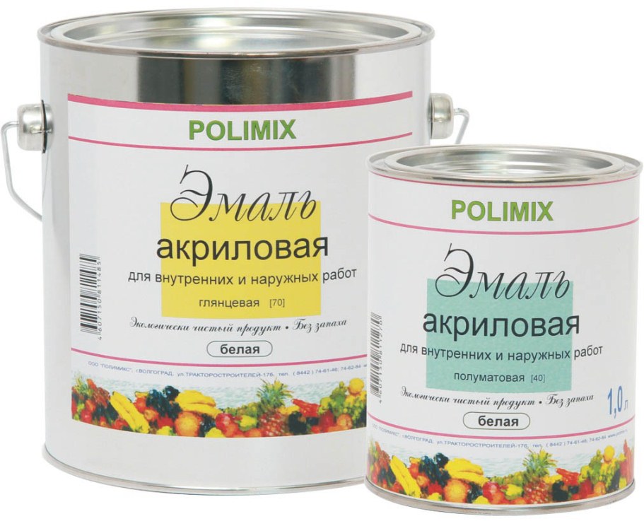 Die Basis von Acrylemail besteht aus organischen Lösungsmitteln (Produkte der petrochemischen Industrie), Pigmenten und Acrylharz. Last und verursacht hohe Leistungseigenschaften von Emaille. Während des Aushärtens bildet es auf der Oberfläche eine feste Schicht, die feuchtigkeitsundurchlässig ist, hohe und niedrige Temperaturen trägt und die Oberfläche vor der Wirkung von Schädlingen schützt.