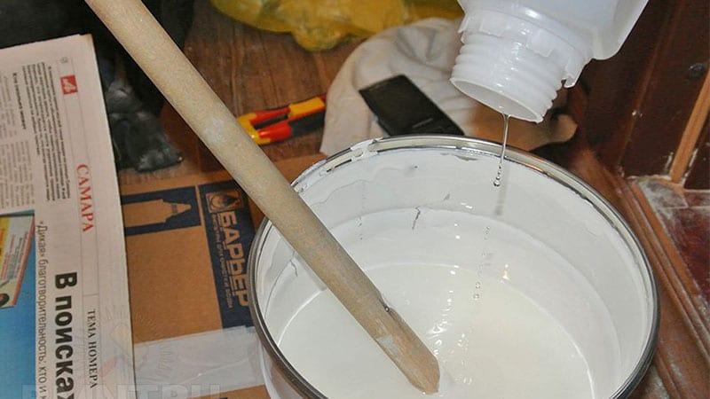 Bei Verwendung der Spritzpistole wird die flüssige Konsistenz der Zusammensetzung nicht funktionieren. Anstelle von Wasser sollten Sie spezielle Lösungsmittel für Acryl-Emaille verwenden. In der Regel können sie im gleichen Laden gekauft werden, in dem der Emaille gekauft wird.