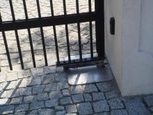 - Die minimale Fläche. Die Installation des Geräts erfolgt in einem begrenzten Bereich, hinter dem Tor versteckt. Somit verhindert das Design nicht die Bewegung von Fahrzeugen.