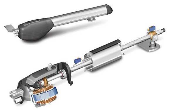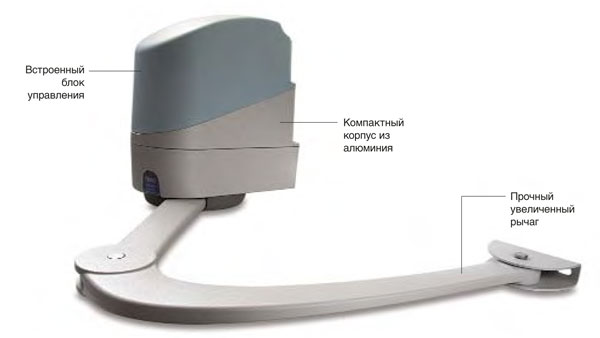 Unter den elektrischen Antrieben ist der Hebelmechanismus nicht weniger gefragt, was die beste Option für die Installation mit Ihren eigenen Händen ist. Die Installation wird durch sein Gewicht von 13,5 kg erleichtert.