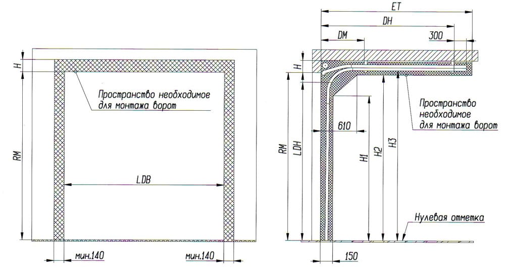 Die Öffnung und die Wände sind streng in der gleichen Ebene angeordnet. Um dies zu erreichen, sind die Wände und die Decke in der Garage verputzt.