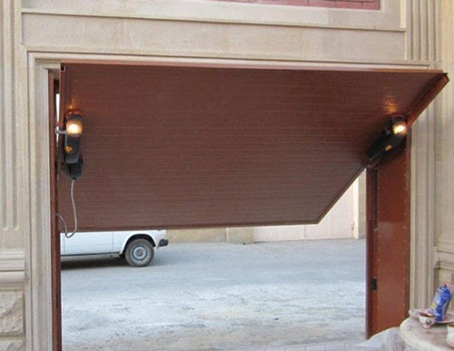 - Benötigen Sie keinen zusätzlichen Platz zum Öffnen des Tores. Wenn sie geschlossen sind, sind sie eine Verlängerung der Wand, im Freien sind sie parallel zur Decke angeordnet.