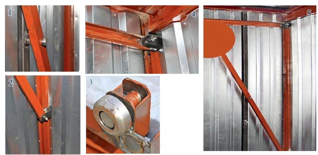 - Das Tor besteht aus einem Rahmen, Blatt und Führungen. Der Stahlrahmen ist der Hauptteil des Mechanismus, wie er sich bewegt. Es besteht aus Rohren, die einen rechteckigen Querschnitt haben.