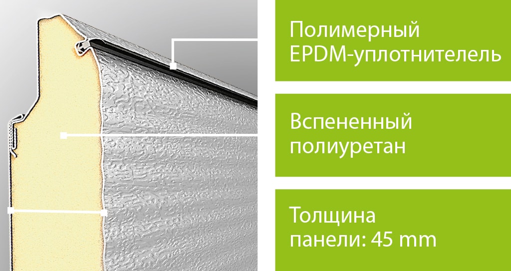 - LPU. Modelle mit der höchsten Wärmedämmleistung. Die Tücher haben eine Dicke von 4,2 cm und durch die Installation solcher Strukturen können die Kosten für die Beheizung der Garage erheblich gesenkt werden.
