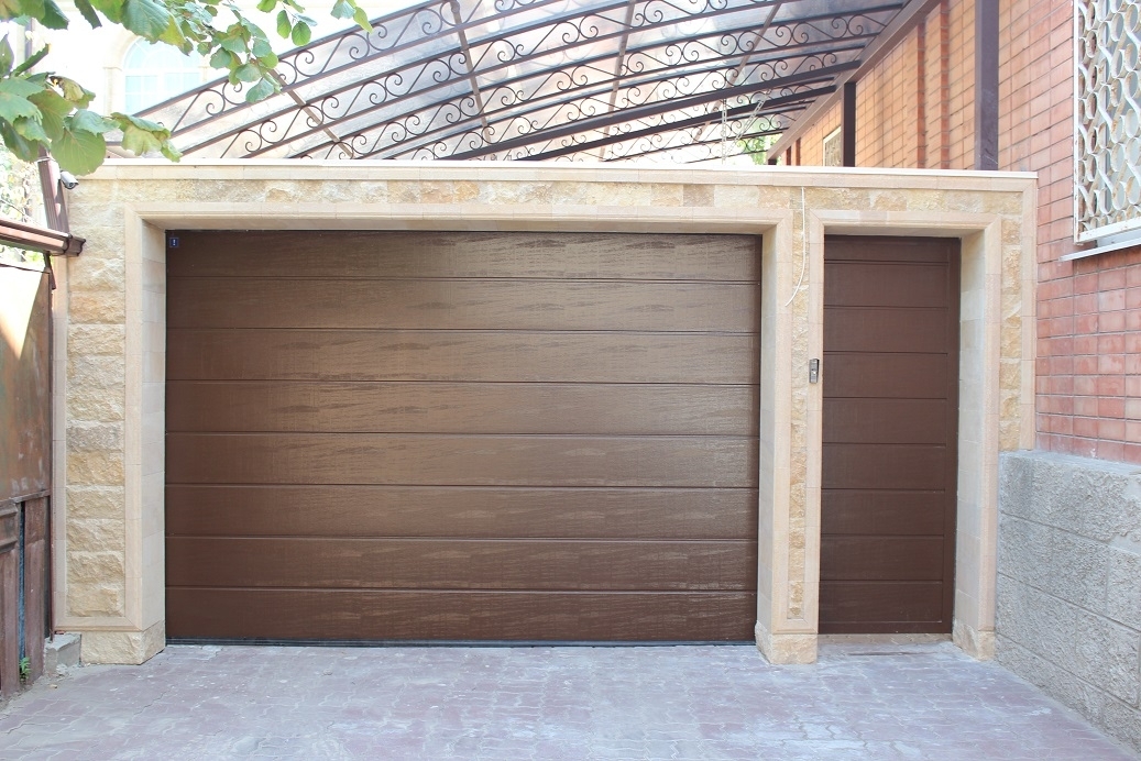 Sektionaltore können mit einer Schlupftür ausgestattet werden. Solche Modelle bieten eine einfache Bedienung. Zum Beispiel können Sie das notwendige Werkzeug nehmen oder das Fahrrad ausrollen, ohne das Tor zu öffnen.