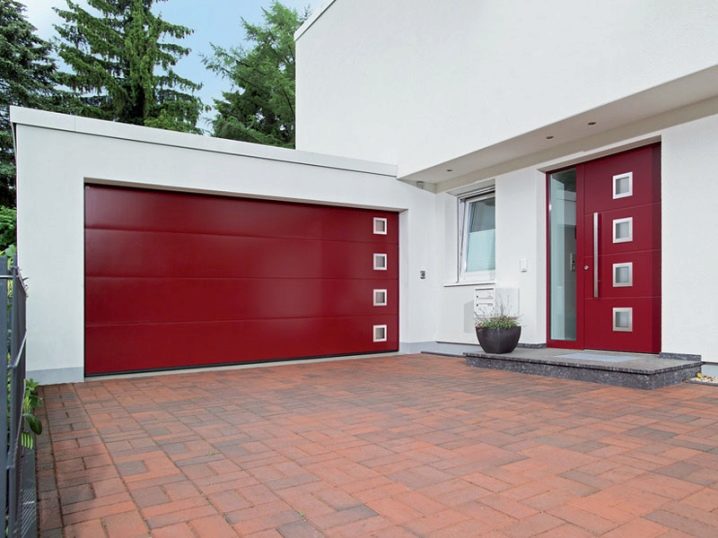 Garagen-Sektionaltore sind Produkte, die sich vertikal öffnen und im Deckenteil befestigt sind. Ihr Funktionsprinzip besteht darin, die zwischen ihnen befestigten Abschnitte entlang der Führungen zu bewegen. Es ist möglich, solche Tore von der Fernbedienung aus zu steuern, was die Bedienung stark vereinfacht. Alle Modelle des Herstellers Hörmann haben: