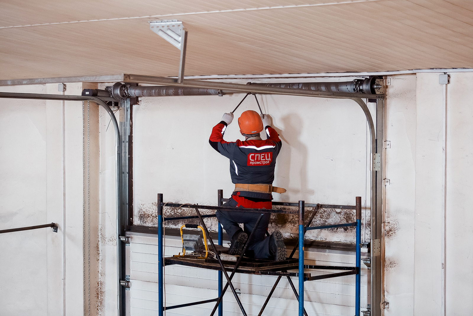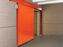 An den Rändern des Eingangs sind Führungen angebracht. Sie befinden sich im oberen Teil der Öffnung und biegen sich sanft in die Decke. In diese Nuten werden Rollen in die Führungen eingeführt. Wenn sich das Tor öffnet, bewegen sich die Rollen entlang Führungen in speziellen Rillenschienen. Die Leinwand erhebt und biegt sich und fixiert sich dann an der Decke.Beim Schließen bewegt sich das gesamte System in umgekehrter Reihenfolge.