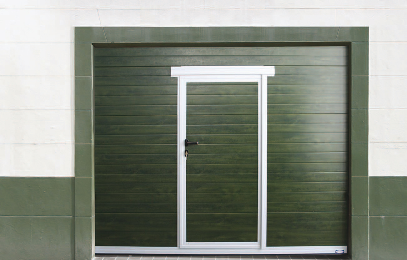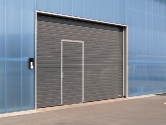 - Sektionaltor mit Tür sie zeichnen sich dadurch aus, dass sie eine Leinwand sind, in der sich eine zusätzliche Eingangstür befindet. Sie können das Tor bei Bedarf betreten, ohne das Tor vollständig zu öffnen. Und dieses Tor ist normalerweise nur offen. Das Türblatt selbst steigt auch auf, obwohl die Tür auf ihnen installiert ist. Es kann sich um Modelle mit Rollläden handeln.In der Regel wird das Türblatt an die Farbe des Tores angepasst und hat eine sehr niedrige Schwelle. Dies ist eine großartige Lösung für diejenigen, die viel Zeit in der Garage verbringen. Sie können es betreten, ohne das Tor vollständig zu öffnen und es nicht hinter sich zu schließen. Dies ist eine großartige Option, um eine zusätzliche Türinstallation zu vermeiden.