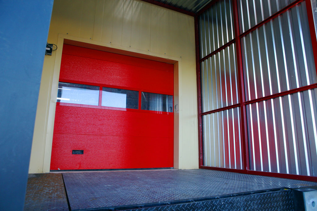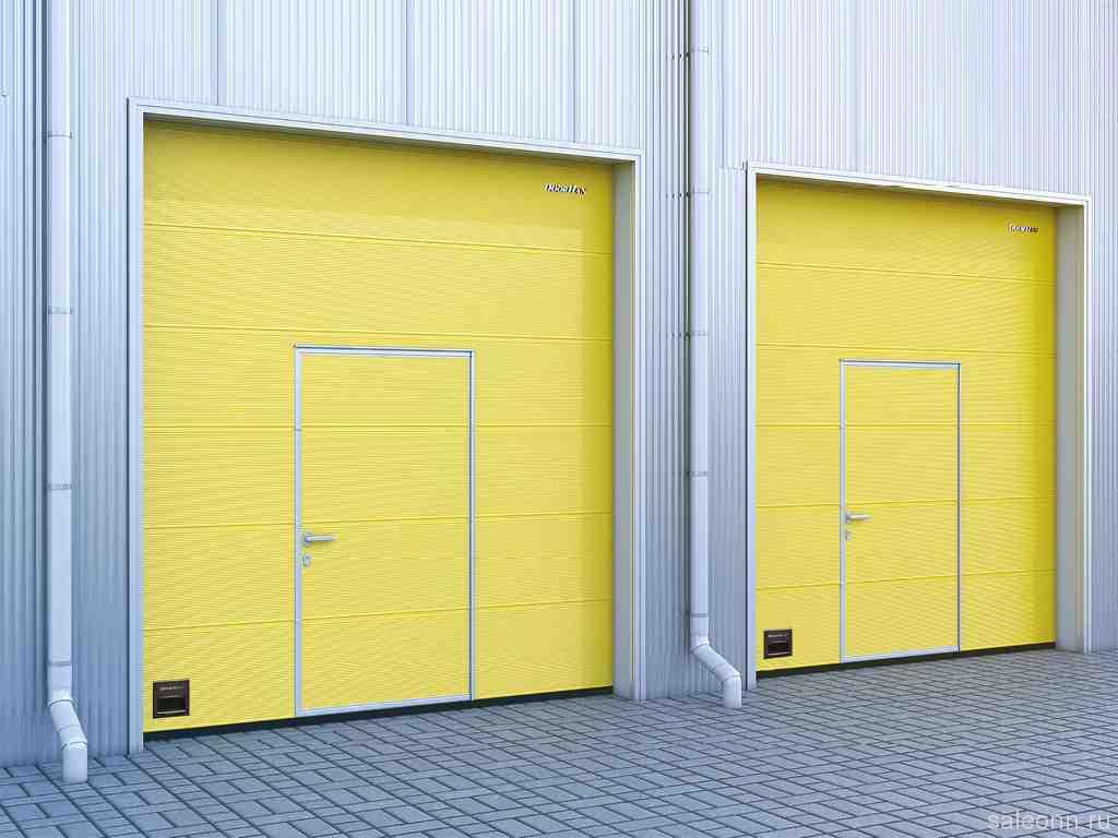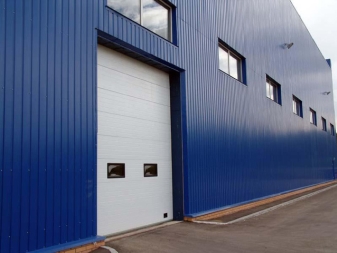 - Industrielle Sektionaltore sind zuverlässiger. In der Regel ist diese Art von Tor für 100.000 Zyklen ausgelegt. Meistens haben sie einen Hebemechanismus am Torso, der mit einem Schutz gegen Bruch des Torsos oder der Federn ausgestattet ist. Sie sind für Lager- und Industrieräume bestimmt. Und dies führt zu ihrem nicht standardmäßigen Aussehen, wodurch sie unter einem geneigten Dach und am Eingang zu Lagerhäusern installiert werden können, selbst mit sehr hohen Decken, die für den Zugang von Frachtfahrzeugen notwendig sind. Aber solche Modelle haben ein einfacheres Design und Design.