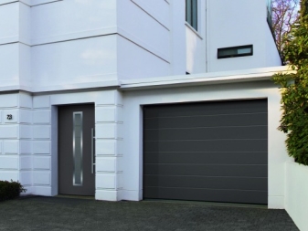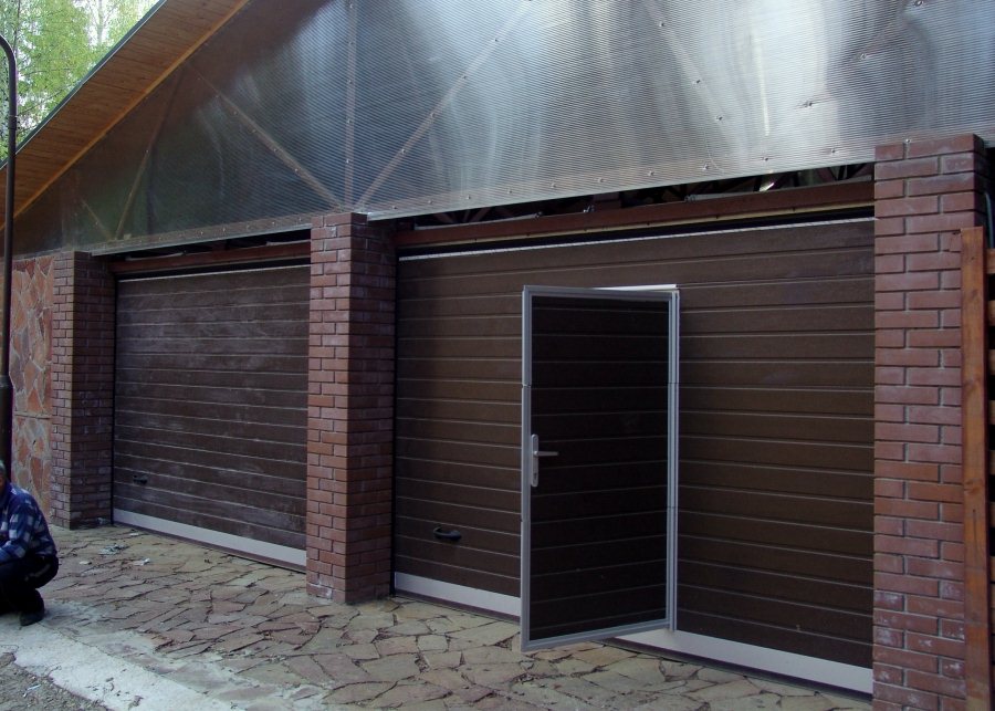 - Installation des eingebauten Tors. Oft gibt es keinen Ausgang von der Garage zum Haus, also muss man zuerst das Auto fahren, aussteigen und erst dann das Tor schließen. Aber um dieses Problem zu lösen, kann eine zusätzliche Tür installiert werden. In der Ebene des Sektionaltores ist es teurer. Dieses System ist ziemlich kompliziert, insbesondere bei der Installation. In der Regel hat eine solche Tür keine Schwelle, so dass Sie problemlos ein Fahrrad und ein paar Gartengeräte aus der Garage werfen können. Und dafür müssen Sie nicht den ganzen Mechanismus benutzen.
