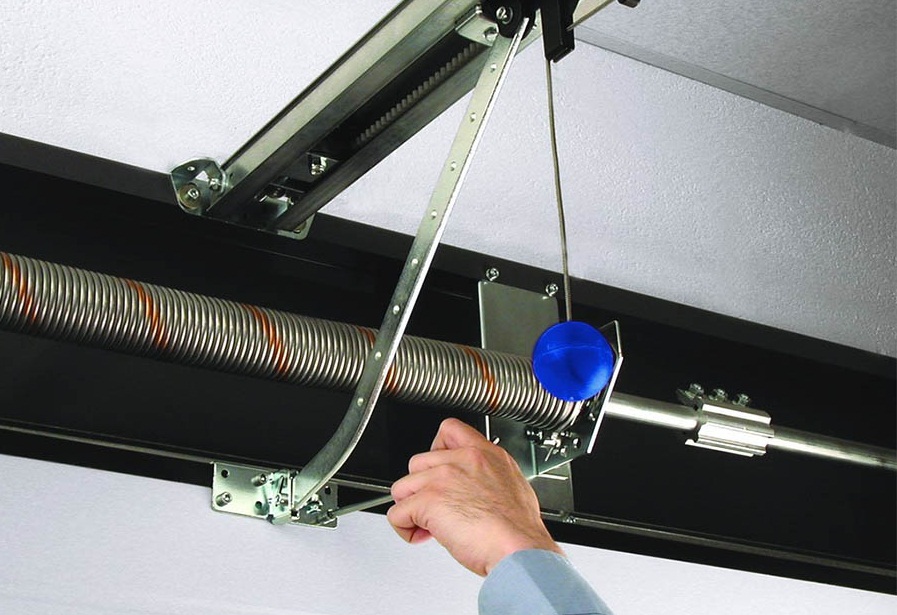 - Torsion Sektionaltor auf der Welle montiert. Es selbst befindet sich über dem Gang. Im geschlossenen Zustand bringt das Tor die Feder nicht in Bewegung, und es schrumpft nicht, aber wenn die Abschnitte angehoben werden, verdrehen sich die Federn und zu dieser Zeit sammelt sich ihre Elastizität an. Beim Abstieg wird diese Elastizität freigesetzt.