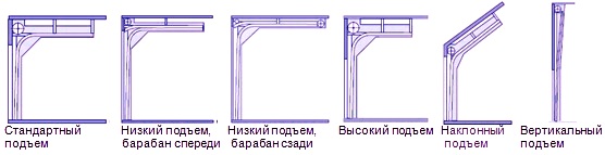 - Schräge Option - Dies ist ein Hochhaus, was bedeutet, die Decke vom Tor zur Rückwand zu heben. Installiert in einer Höhe von 50 bis 150 cm Nebenflüssen. Es ist ziemlich teuer, im Vergleich zu den anderen, Konstruktion.