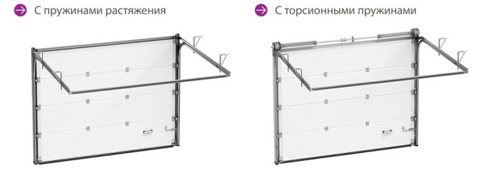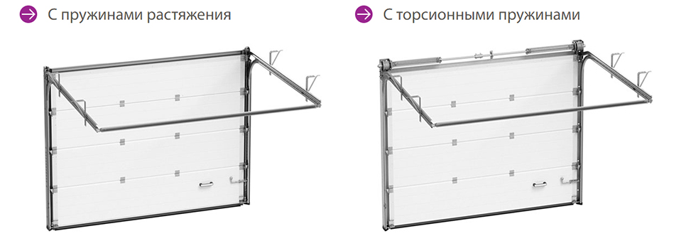 - Die zweite Option ist ein Modell mit expandierenden Federn. Sie sind in den Seitenteilen relativ zu den Führungen angeordnet. Wenn das Tor aufsteigt, dehnen sich die Federn aus, und wenn sich der Durchgang schließt, kehrt die Feder in ihre ursprüngliche Position zurück.
