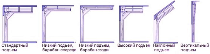 Die Art der Arbeit und der Aufbau der Tür werden im Allgemeinen vom Hebemechanismus beeinflusst. In der Regel gibt es zwei Hauptoptionen - Torsion und Feder: