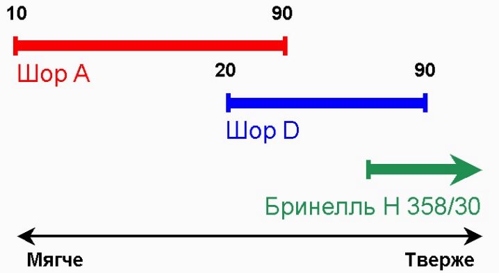Der wichtigste Indikator, der in der Liste der technischen Eigenschaften des Dichtungsmittels angegeben ist, ist die Shore-Härte. Es ist eine Methode zur Messung der Härte einer Zusammensetzung.Die Ergebnisse werden durch einen numerischen Wert mit einem Buchstaben entsprechend der Skala dargestellt. Hohe Härte wird durch eine große Anzahl bestimmt. Der Buchstabe A zeigt weichere Indikatoren, der Buchstabe D - fester an.