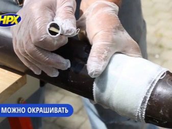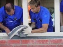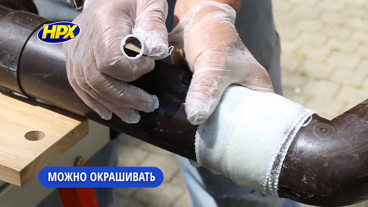 - Experten empfehlen, die Verbindung mit einem Imprägniermittel zu behandeln und dann das Klebeband auf die feuchte Zusammensetzung zu kleben.
