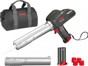 Akzeptable Kostenmodelle sind in der Amateurgruppe von Geräten enthalten. Zum Beispiel ist die ideale Option für verschiedene Arten von Mischungen eine Skelettpistole. Das Modell ist langlebig, preiswert. Ein Dichtungsrohr passt perfekt in eine starre Rippenkonstruktion. Die Kolbenstange sorgt für einen gleichmäßigen Durchfluss der Substanz.