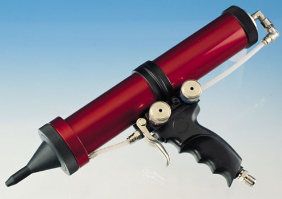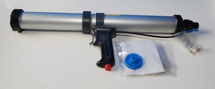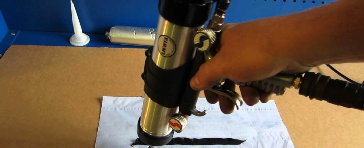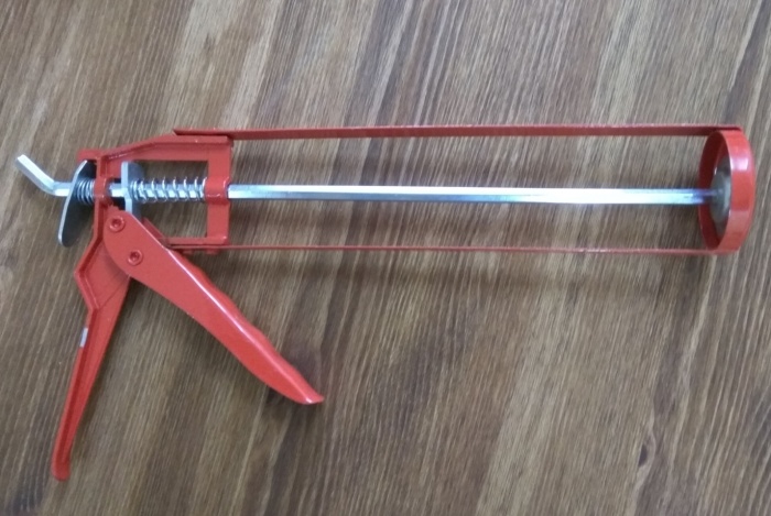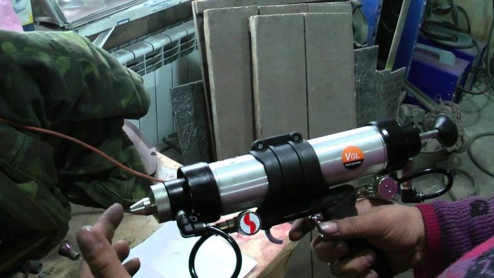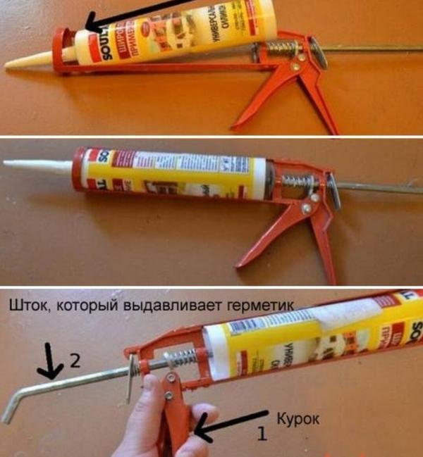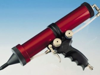 Die Pistole für Dichtungsmittel erhielt ihren Namen wegen des ähnlichen Prinzips der Aktion mit dem Prototyp. Außerdem sieht dieses Werkzeug äußerlich wie eine echte Waffe aus. Guide simuliert den Schaft der Waffe. Es gibt ein spezielles Gerät namens Trigger. Es gibt auch einen praktischen Griff.