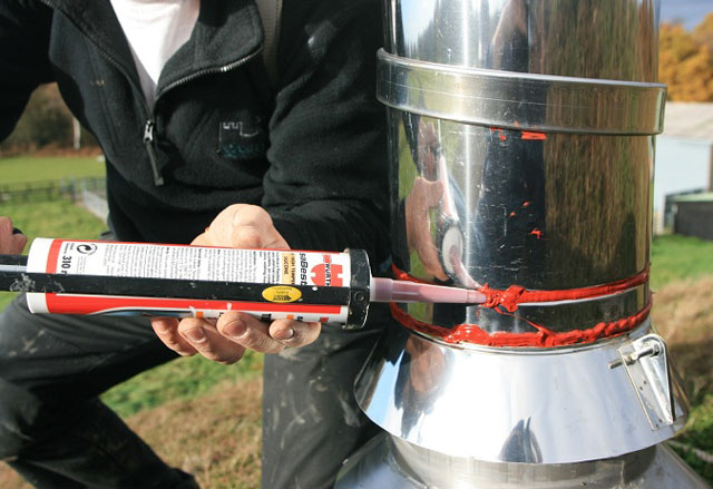 Hitzebeständige Dichtstoffe mit solchen Eigenschaften werden zum Einbetten von Ziegelrohren, Sandwich-Rohren verwendet. Hitzebeständige Substanzen sind für Metallkamine zugelassen. Es ist auch erlaubt, die Schornsteine der Pyrolyseeinheit zu benutzen, wenn der Temperaturbereich der Gase nicht höher als 150 Grad ist.